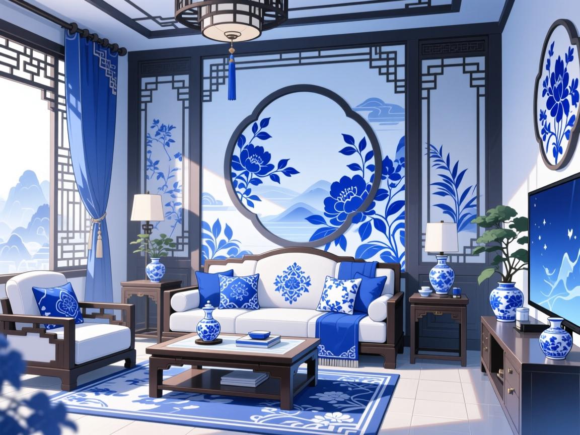 如今设计师玩青花蓝,早跳出了瓶瓶罐罐。温州某小区的案例让我拍案:采光差的底层客厅,用米灰墙打底,青花蓝山水画从床头蔓延到地毯,再扔两个蓝白纹鼓凳——冷色调反而提亮了空间,比强塞水晶灯聪明多了。