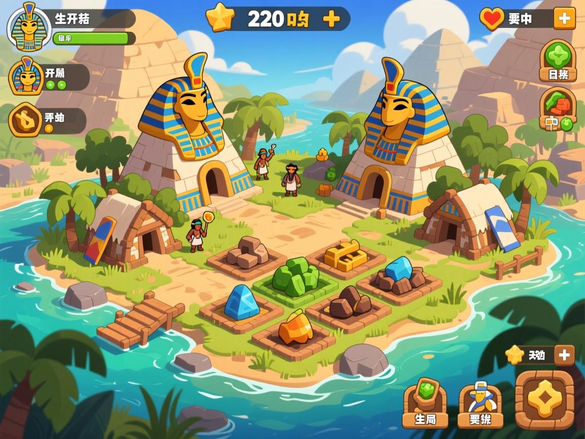 第一次打开史前埃及时,我其实是抱着玩个休闲模拟经营的心态来的。结果发现完全不是那么回事——开局就一个人口,放在食物+1的地点上,采一个吃一个,等于原地踏步。我记得特别清楚,第一次玩的时候因为没搞明白这个基础机制,活活饿死了两个部落,那种挫败感简直了。游戏里的资源系统复杂得让人头大,人口、食物、生产、军力、文化、权威,六种资源要平衡,前期真的手忙脚乱。那个像十字架的文化值特别关键,相当于技能点,得优先弄出来,不然科技树都点不了。科技树也不是乱点的,得跟着剧情需要的方向走,乱点的话后期资源肯定跟不上。