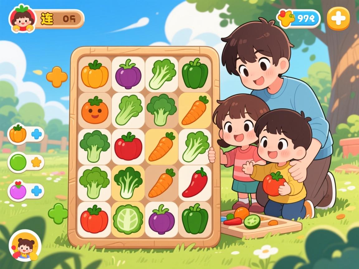 很多孩子刚开始接触蔬菜连连看时容易手忙脚乱,其实有几个实用技巧可以降低挫折感。首要原则是“先中间后四周”——集中精力先解决棋盘中央的图案,因为中央区域可见度最高,配对效率最大。当中间区域清理后,周边图案的移动空间自然增加。对于进阶玩家,“竖通道策略”效果显著。在游戏中期优先消除纵向排列的相同图案,打开垂直通道。这样当上方图案下落时,更容易形成新的配对机会。根据游戏高手测试,采用该策略的玩家通关速度平均提升20%。提示功能的使用时机很关键。建议在孩子连续尝试失败3次后再启用提示,这样既避免了过度依赖,又能在适当时机给予支持。家长可以设置“提示积分制”:每独立完成一个配对得1分,积满5分可兑换一次提示机会,这能培养孩子的资源管理意识。跨领域融合:当蔬菜连连看遇见其他学科