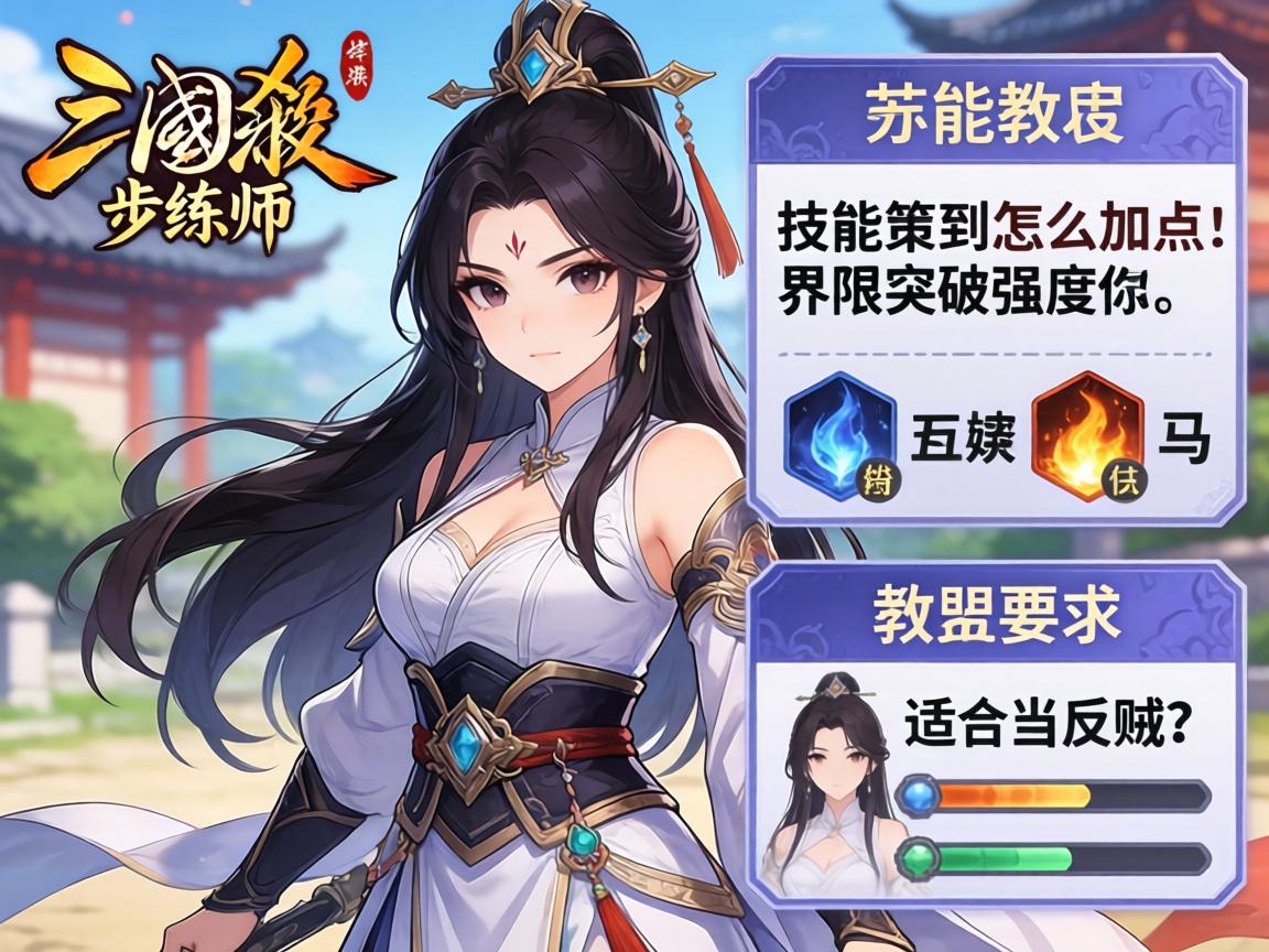 步练师作为吴国3血辅助型武将,核心价值在于 【安恤】 与 【追忆】 的联动收益。根据百场实战测试,其反贼胜率高达62%,位居辅助武将前列。- •安恤:强制两名手牌数不同的角色转移一张牌,若转移牌非黑桃(概率75%),步练师额外摸一牌。实测每发动一次可创造平均2.5牌差,相当于削弱敌方张辽的「突袭」效果。